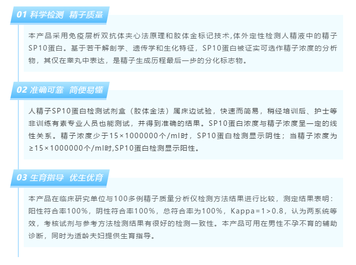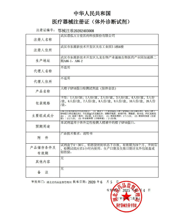 璟泓科技自主研發的人精子SP10蛋白檢測試劑盒(膠體金法)獲中華人民共和國醫療器械注冊證(體外診斷試劑),豐富了“膠體金——優生優育”系列產品線,為男性優生備孕人群帶來便捷準確診斷產品。